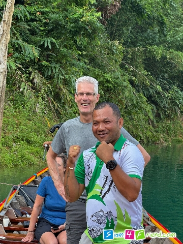 เป็นไกด์ และเปิดบริษัททัวร์ ที่เขื่อนเชียวหลานเขาสก